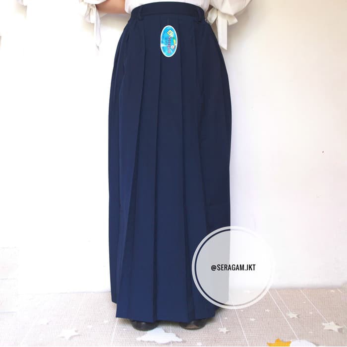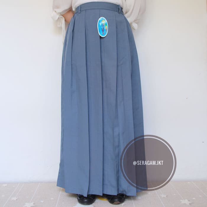 Rok Sekolah Panjang Rampel terbuat dari bahan katun yang merupakan bahan dengan kualitas kain terbaik untuk seragam sekolah. Dengan karakteristik bahan yang tebal, lembut, dan tidak mudah kusut. Memiliki jahitan obras dalam yang kuat dan rapi. Selain itu juga tidak mudah bikin gerah dan mudah untuk disetlika. Untuk dibagain pinggang menggunakan karet yang masih bisa direntangkan.